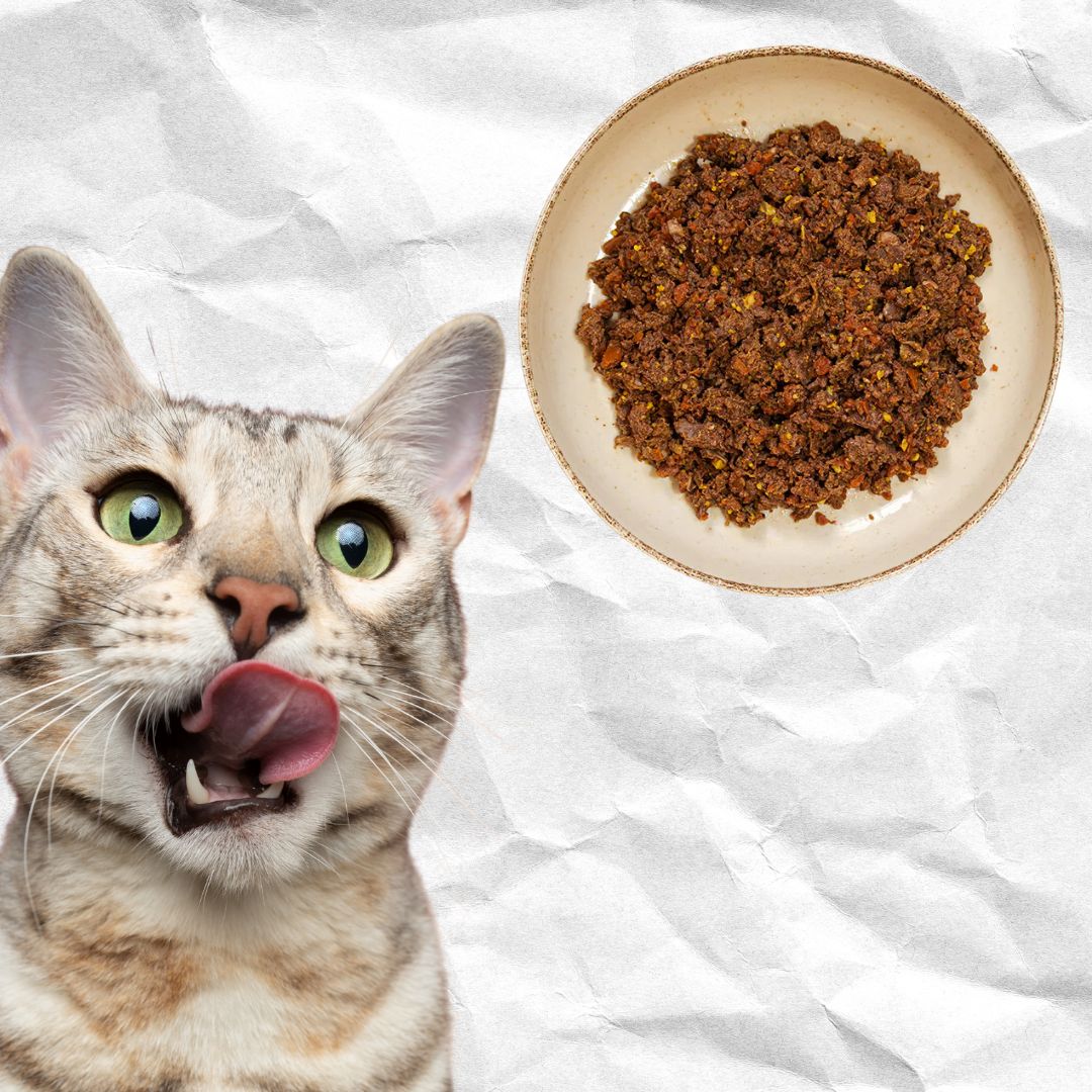INGREDIENTES: Carne de pollo, panza de pollo, cornalitos, hígado de pollo, hígado de vaca, corazón de pollo, huevo, bazo, zanahoria, manteca de cerdo, carbonato de calcio, vitamina D, zin, manganeso, levadura nutricional, vitamina E, Alga Wakame, semillas de lino, taurina en polvo.